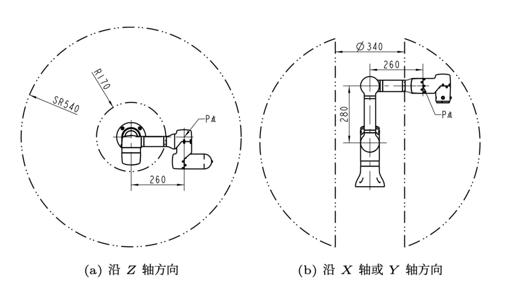 注:以上所提的关节运动范围无限制需排除机器人自干涉的情况,自干涉的情况因实际运动场景而有差异